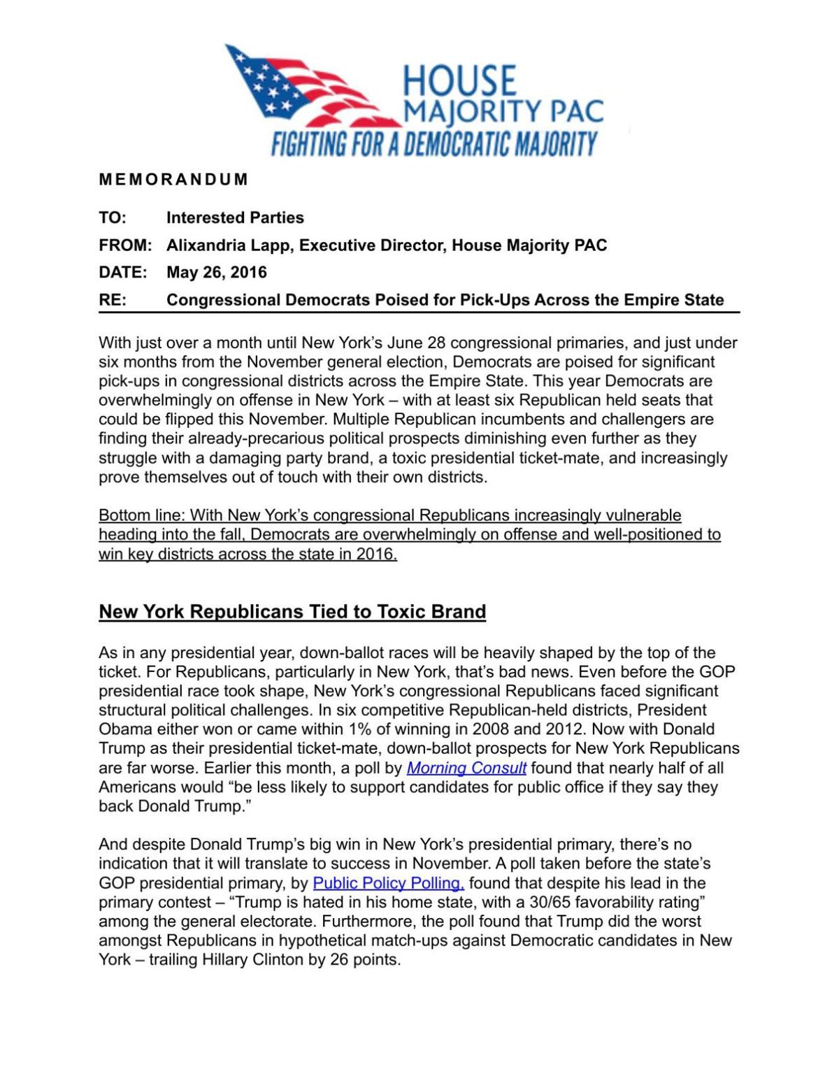 House Majority Pac New York Memo